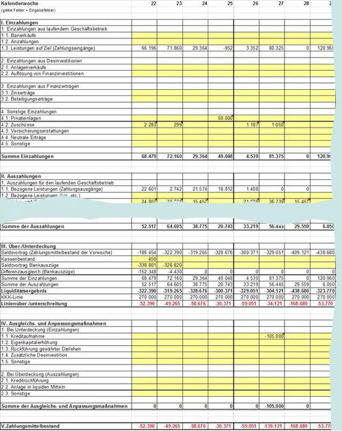 Hinzu kommt, dass die Banken im Bedarfsfall die Erstellung eines Liquiditätsplans anordnen. Dann ist oft Land unter, da keiner so recht weiß, wie er sich dem Thema annehmen soll. Wer hierin eine reine Schikane oder ABM-Maßnahme sieht, ist allerdings auf dem Holzweg und sollte schnellstens umdenken.